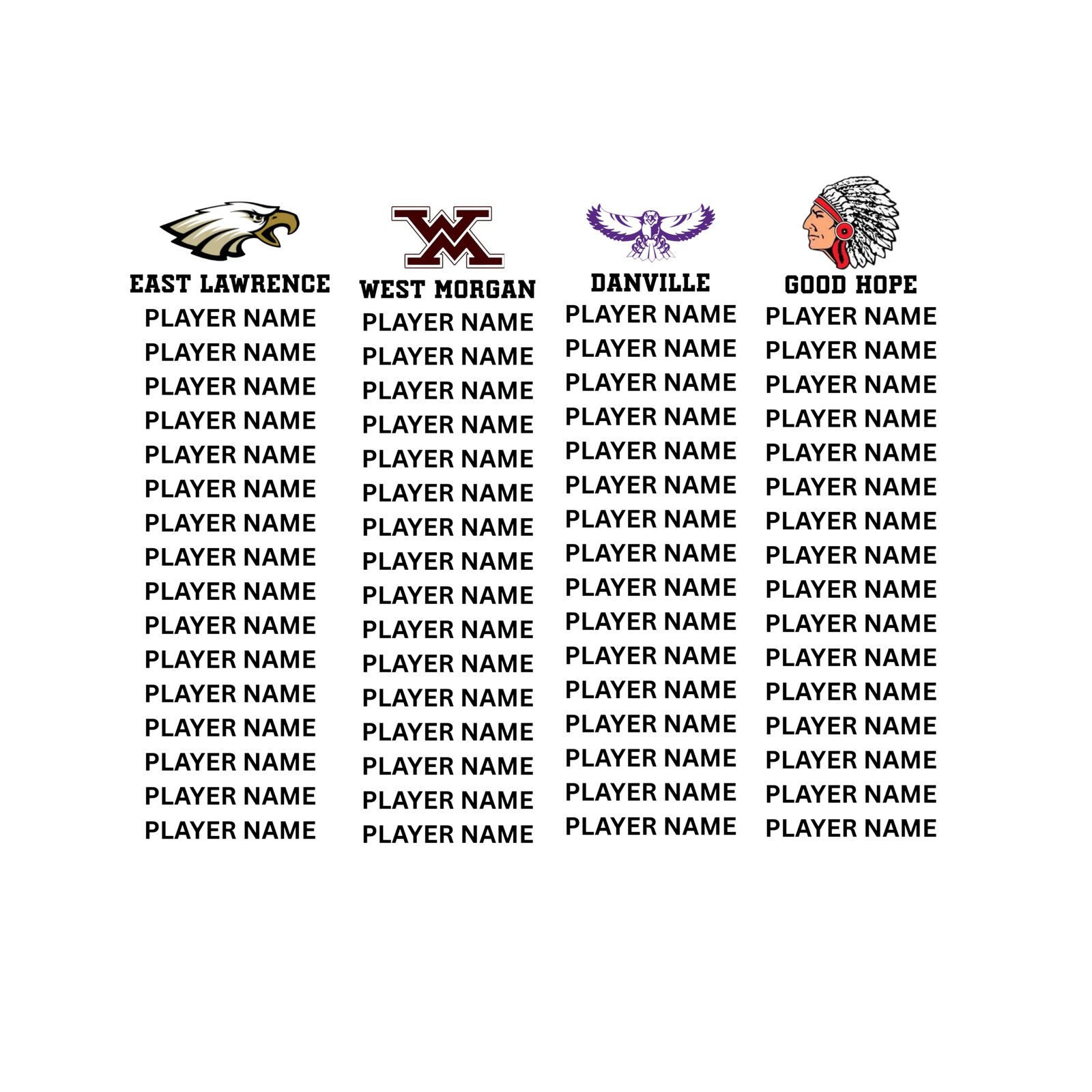 PLAYER NAMES FOR EACH SCHOOL WILL BE ADDED