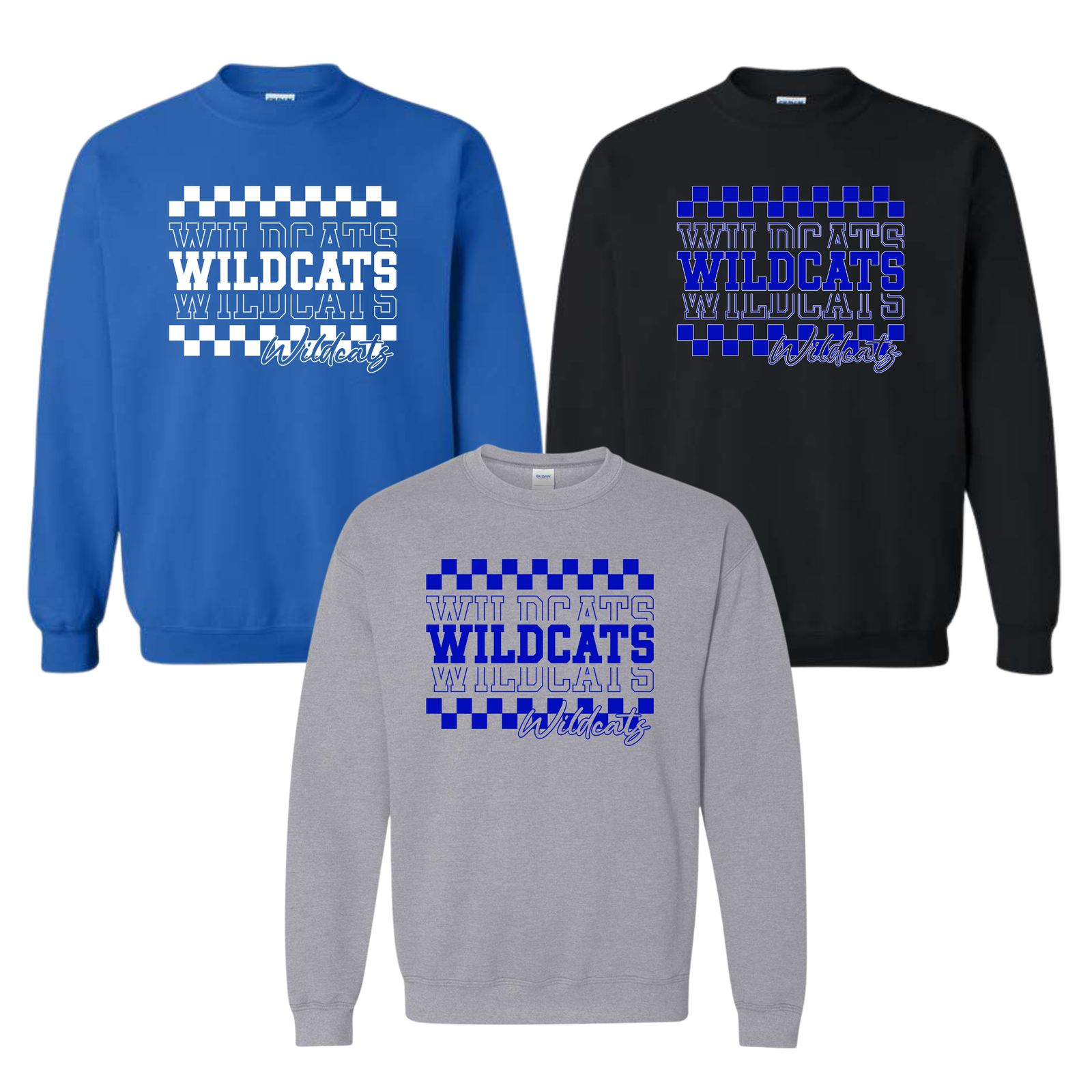 CHECKERED WILDCATS CREW NECK SWEATSHIRT