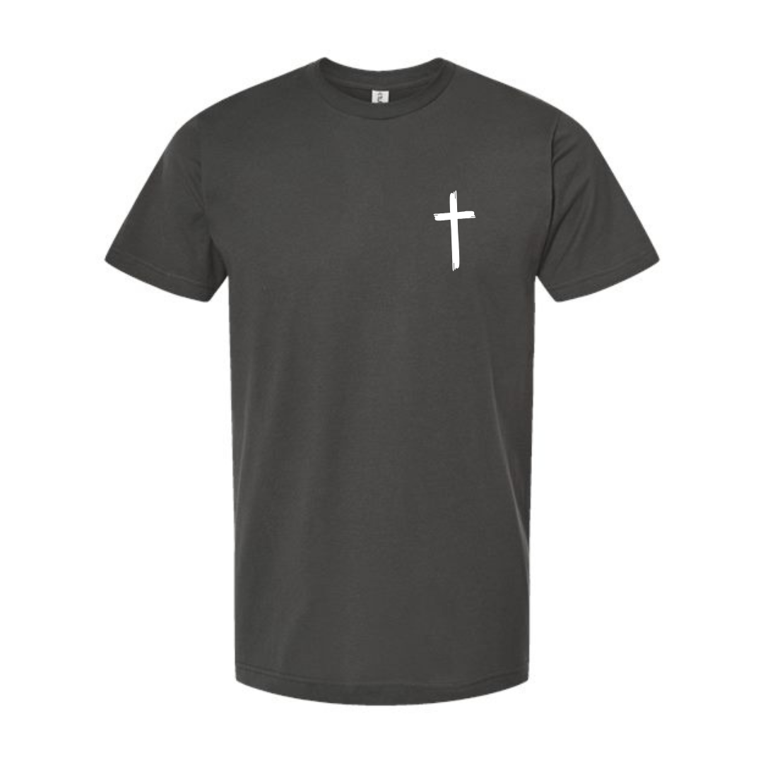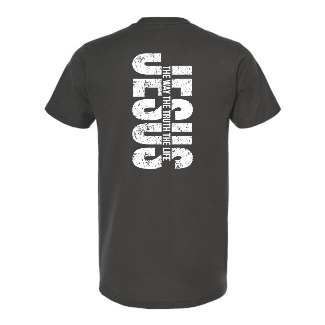 JESUS…. ON CHARCOAL TULTEX T-SHIRT (FRONT AND BACK)