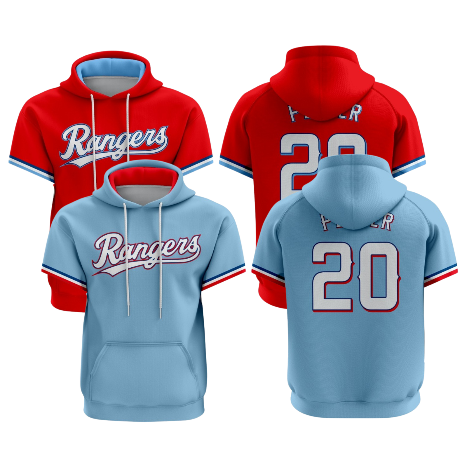 RANGERS SHORT SLEEVE FLEECE LINED HOODIE